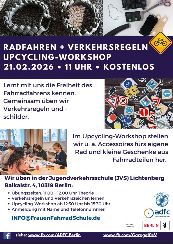 Ihr habt schon von unserer Frauenfahrradschule (FFS) gehört? Lernt mit uns die Freiheit des Fahrradfahrens kennen. Gemeinsam üben wir das Fahren und Bremsen und die Verkehrsregeln. Für Kinderbetreuung ist gesorgt. Es sind alle Frauen herzlich willkommen!
